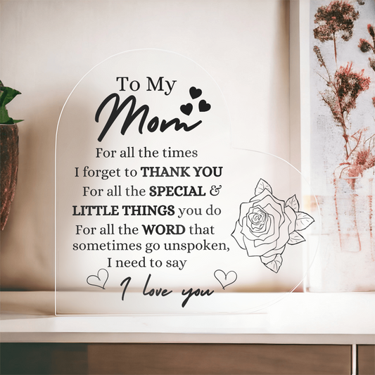 Acrylic Heart-shaped Keepsake Decorative Plaque - Mom Gifts From Daughter/Son - I Love You Mom - Heartfelt Thank You Gif